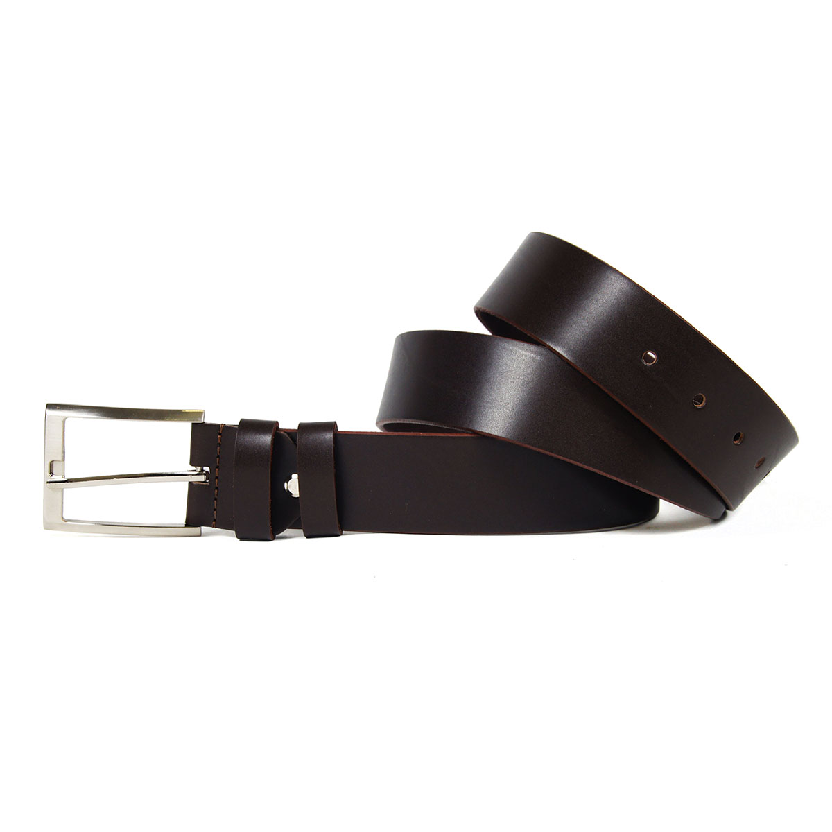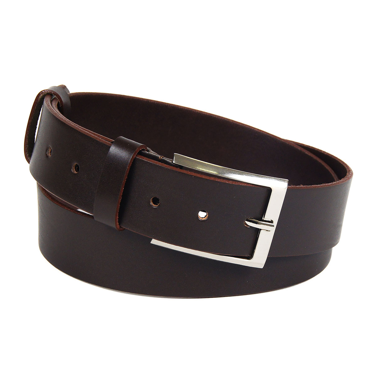 Стильный брючный мужской ремень из натуральной кожи коричневого цвета.