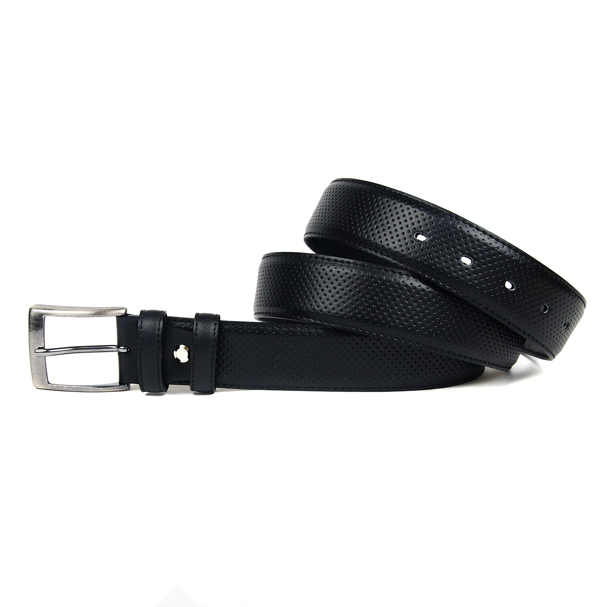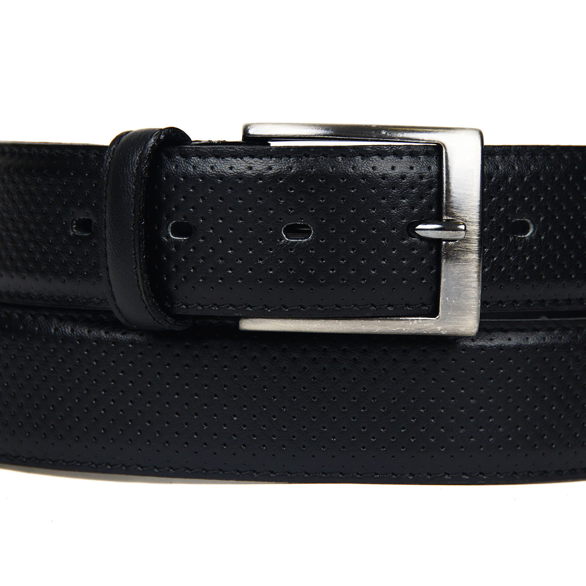 Стильный мужской ремень из натуральной кожи черного цвета c эксклюзивной пряжкой.