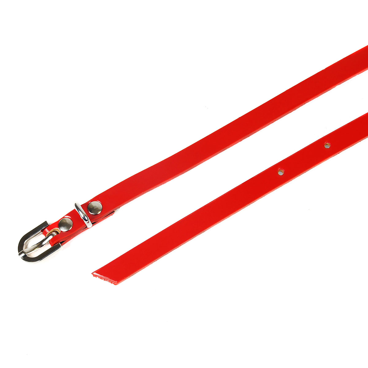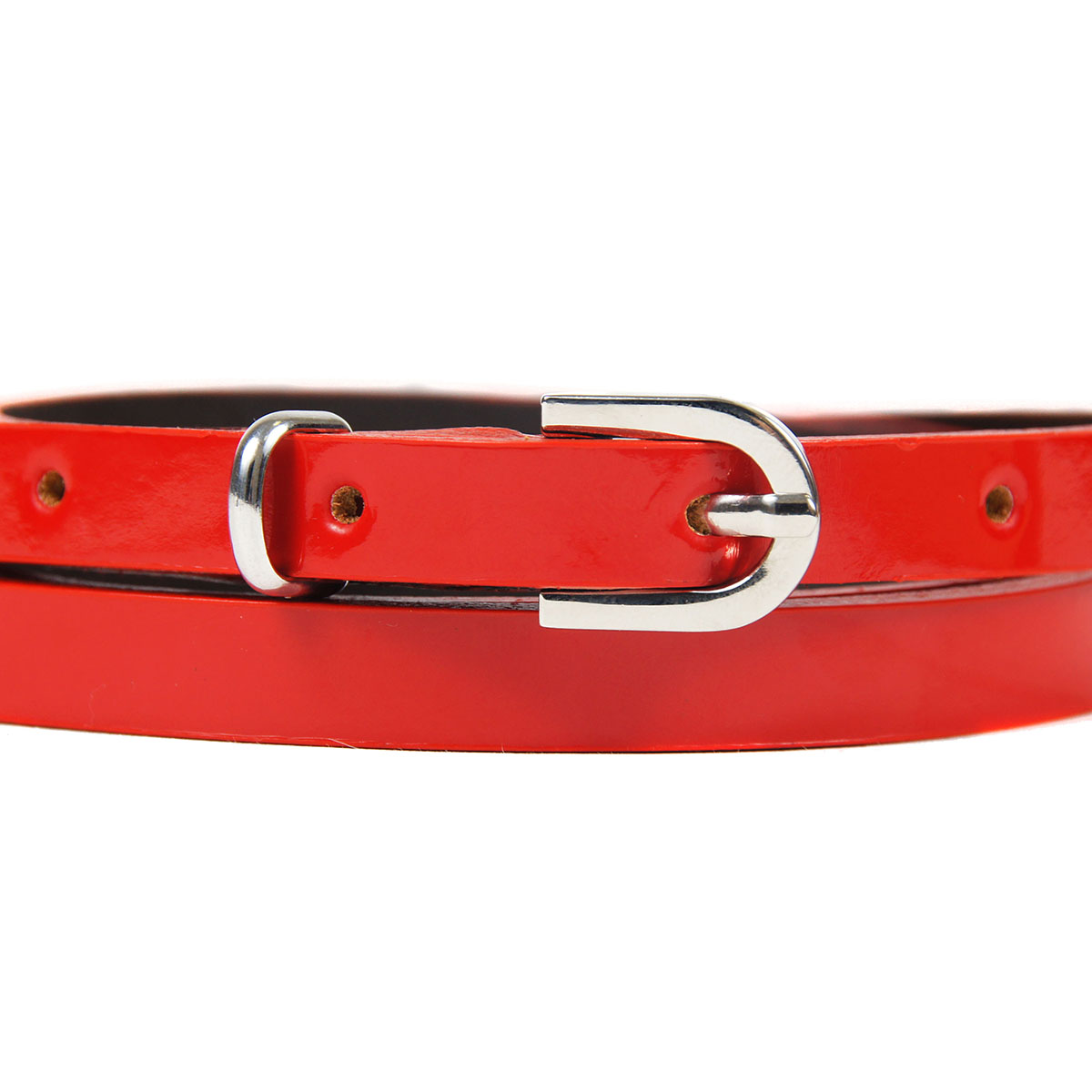 Классический женский ремень из натуральной лаковой кожи, выполненный в красном цвете.