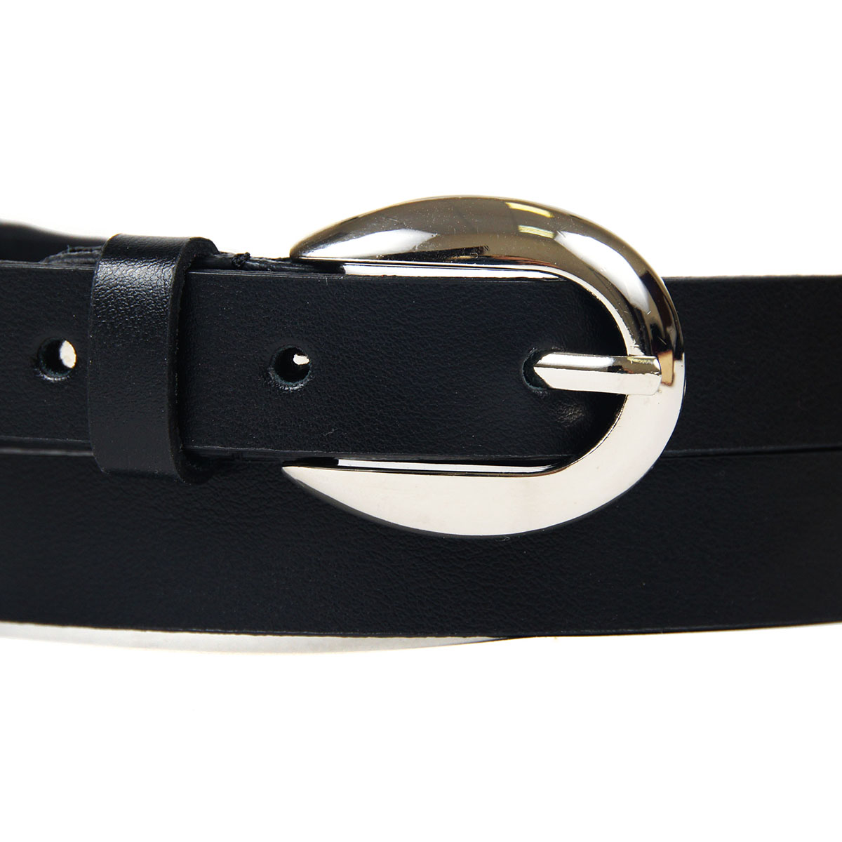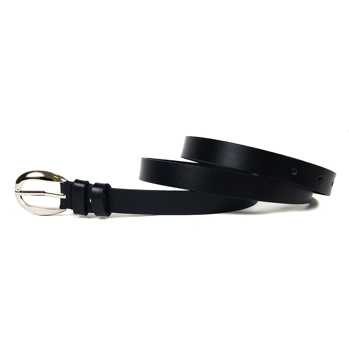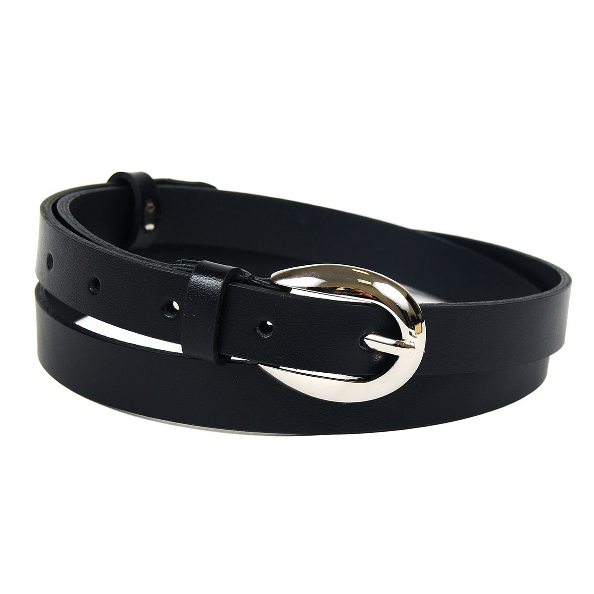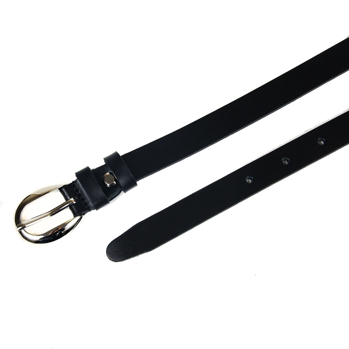 Элегантный женский черный ремень из натуральной кожи, дополненный закругленной пряжкой.