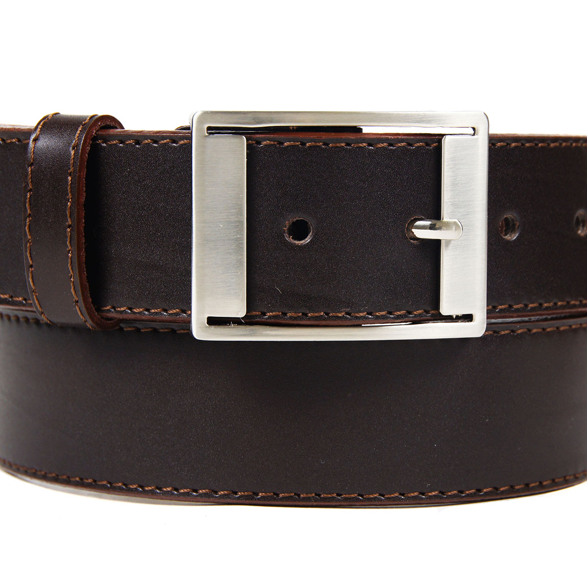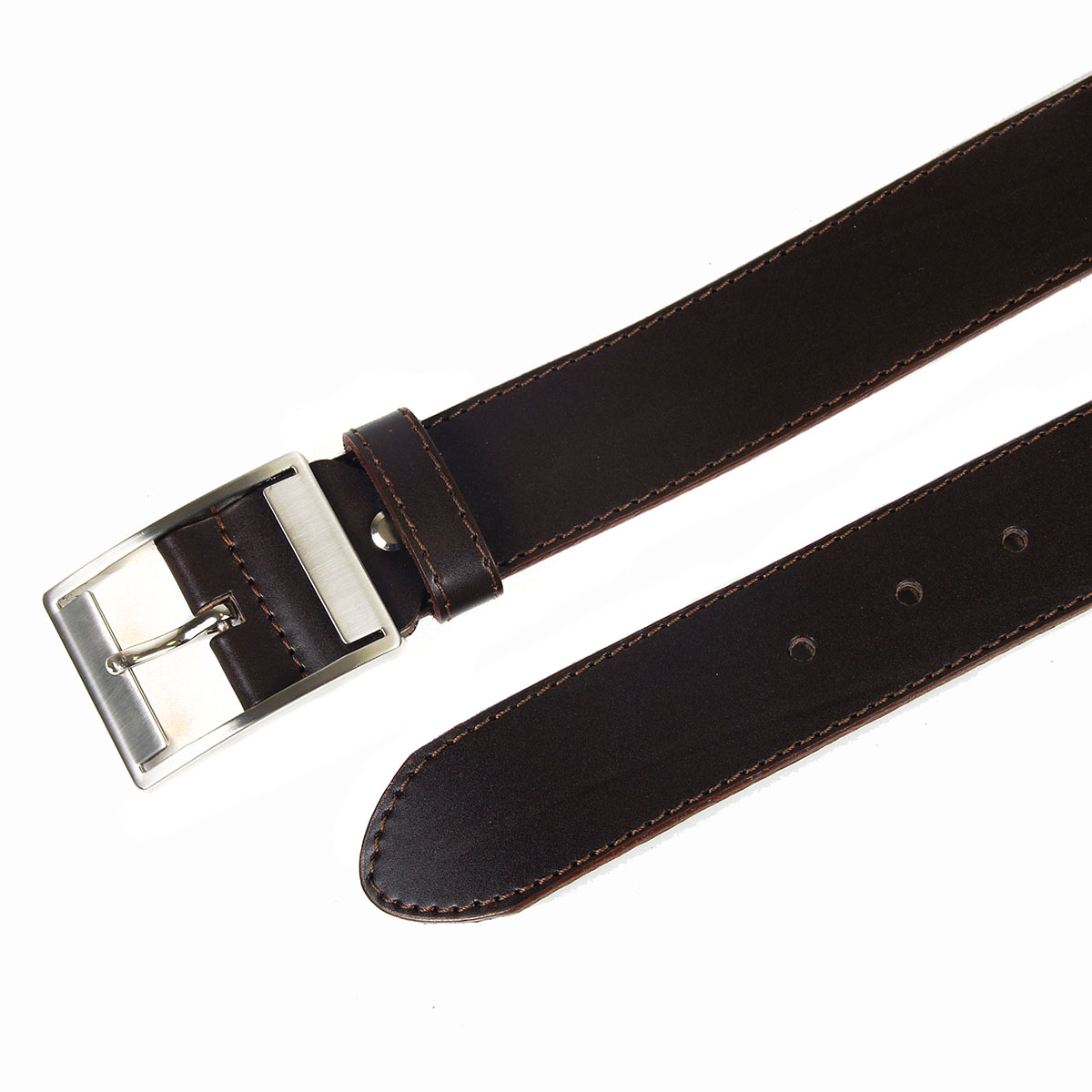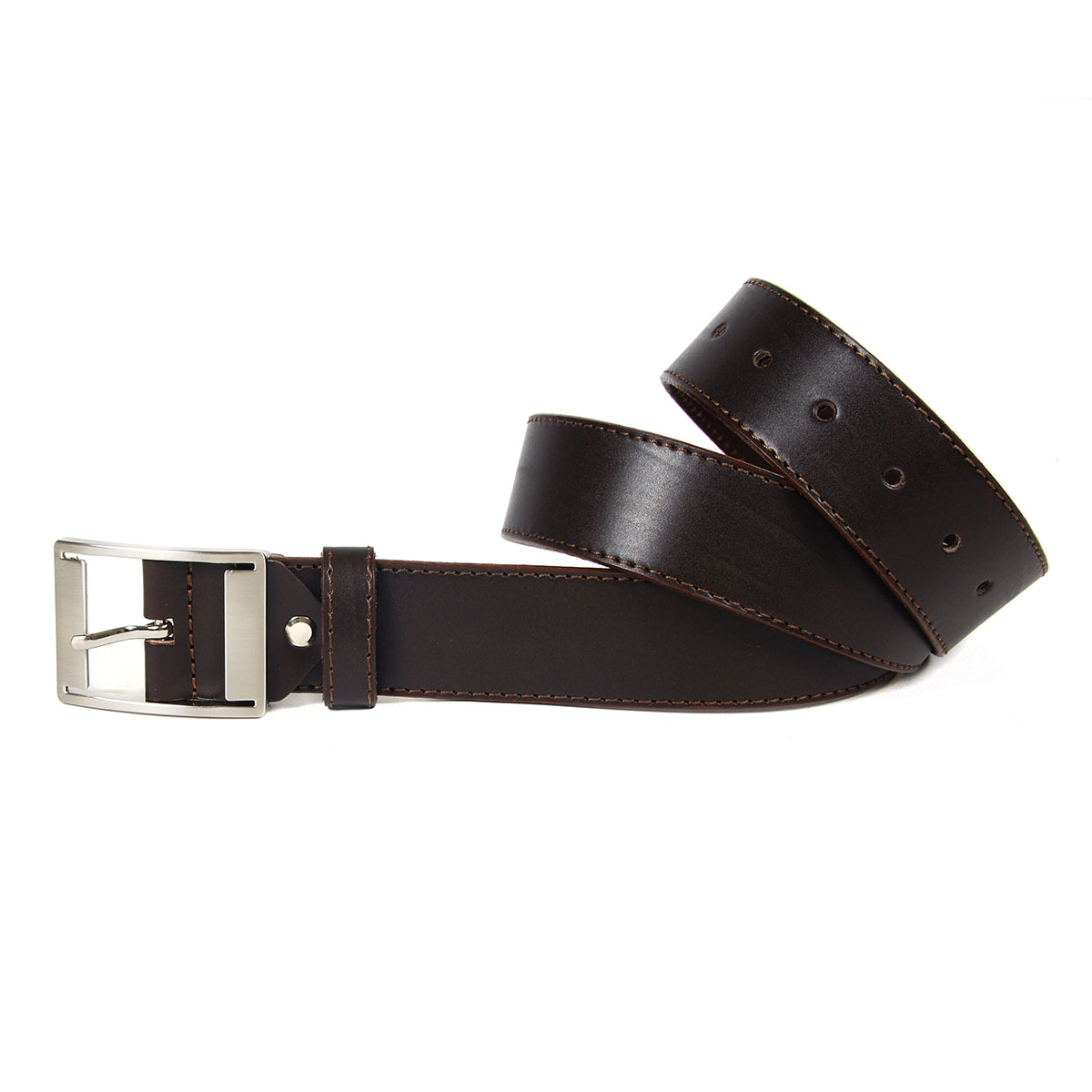 Классический женский ремень из натуральной кожи коричневого цвета, дополненный строчкой и оригинальной пряжкой.