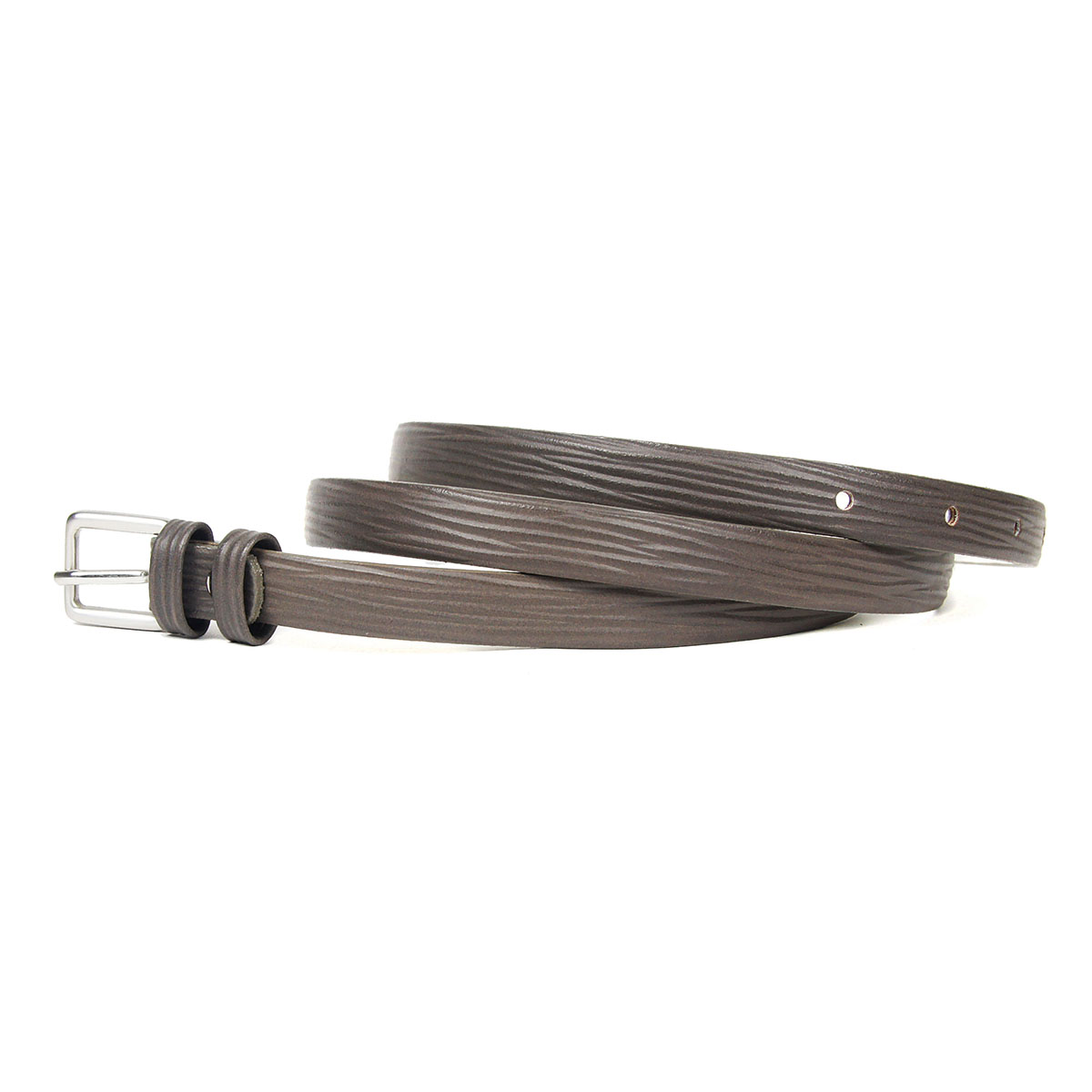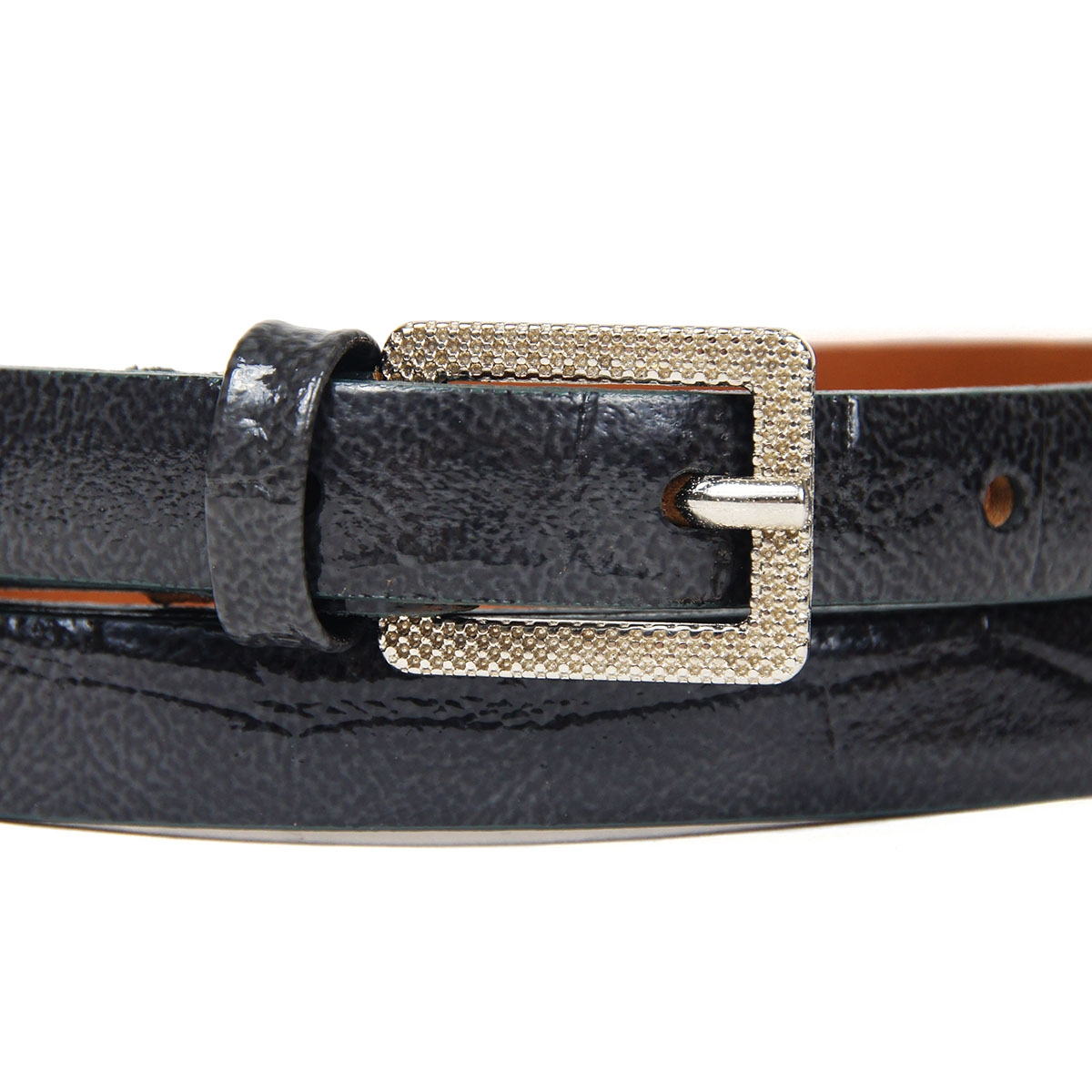 Женский ремень, выполненный из фактурной кожи, дополненный оригинальной пряжкой.