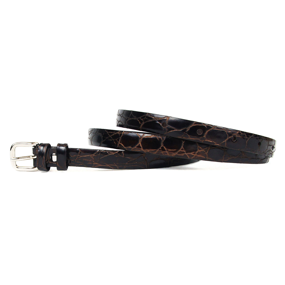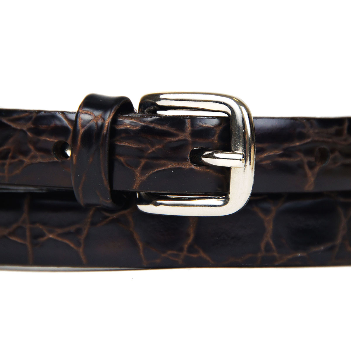 Женский ремень, выполненный из натуральной кожи, дополненный оригинальной пряжкой.