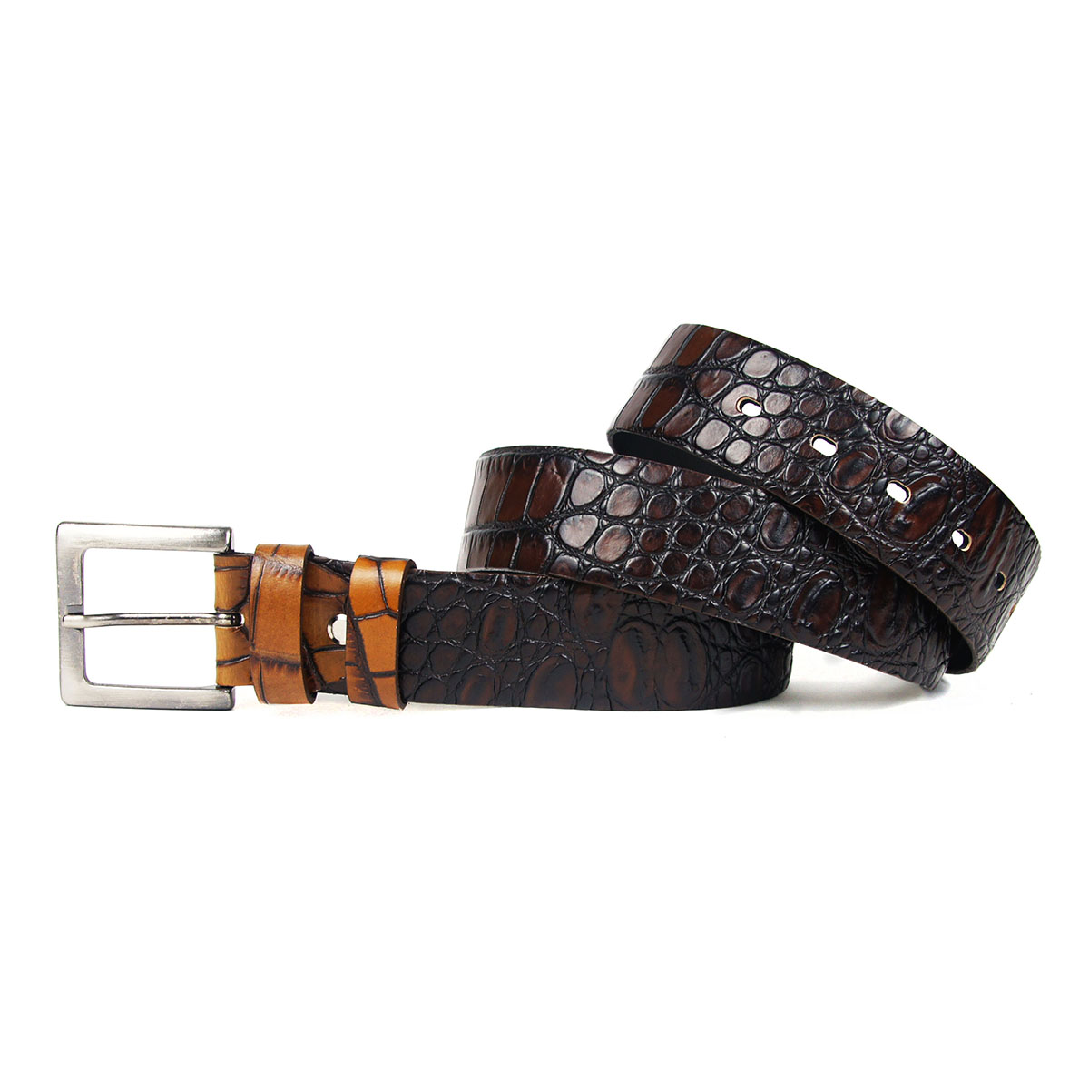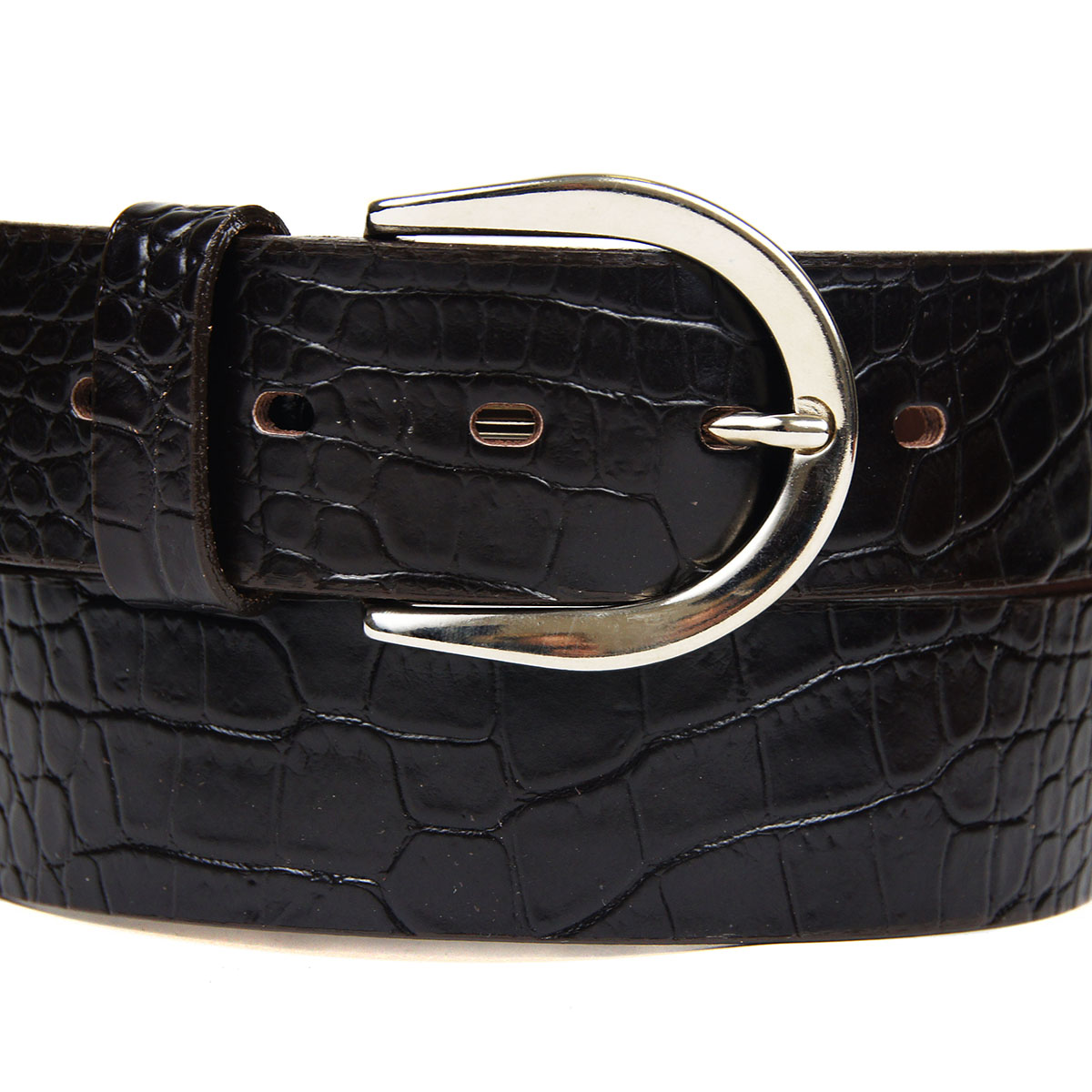 Женский ремень, выполненный из натуральной кожи, дополненный строчкой и оригинальной пряжкой.